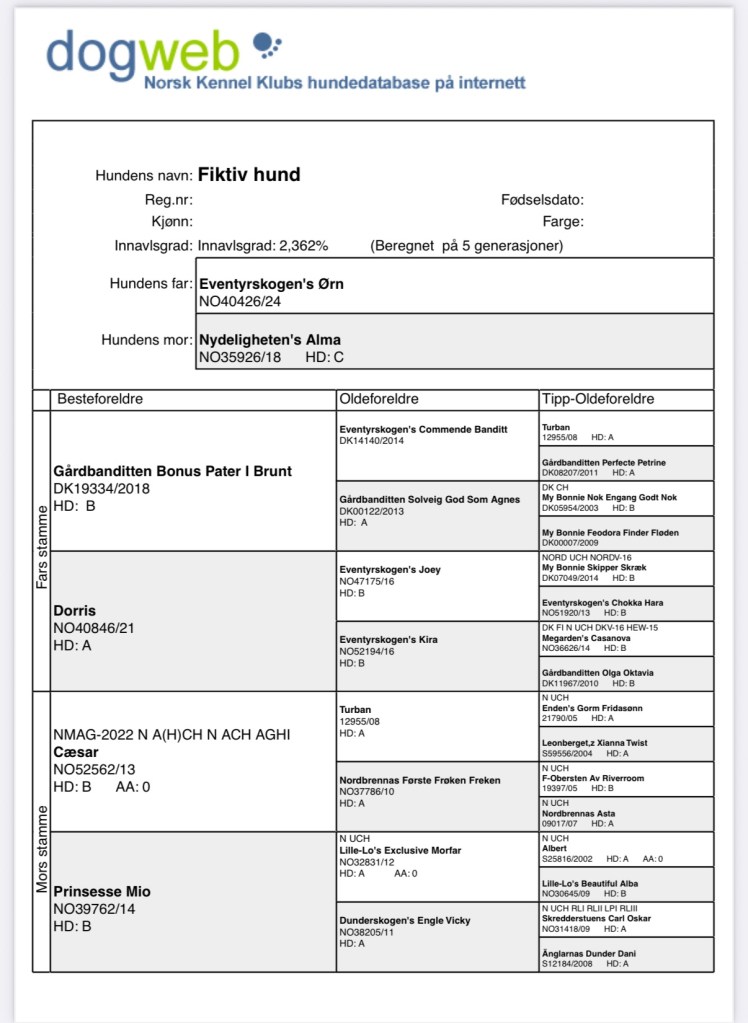 Eventyrskogen’s Ørn Resultat siste utstilling Very Good